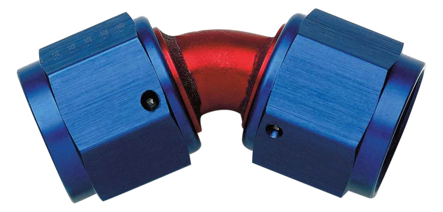Aeroquip FBM2971 45 deg. Female Flare Swivel -06AN Dash x -06AN Dash Aluminum Red/Blue Anodized Bulk Packaged 45 deg. Female Flare Swivel