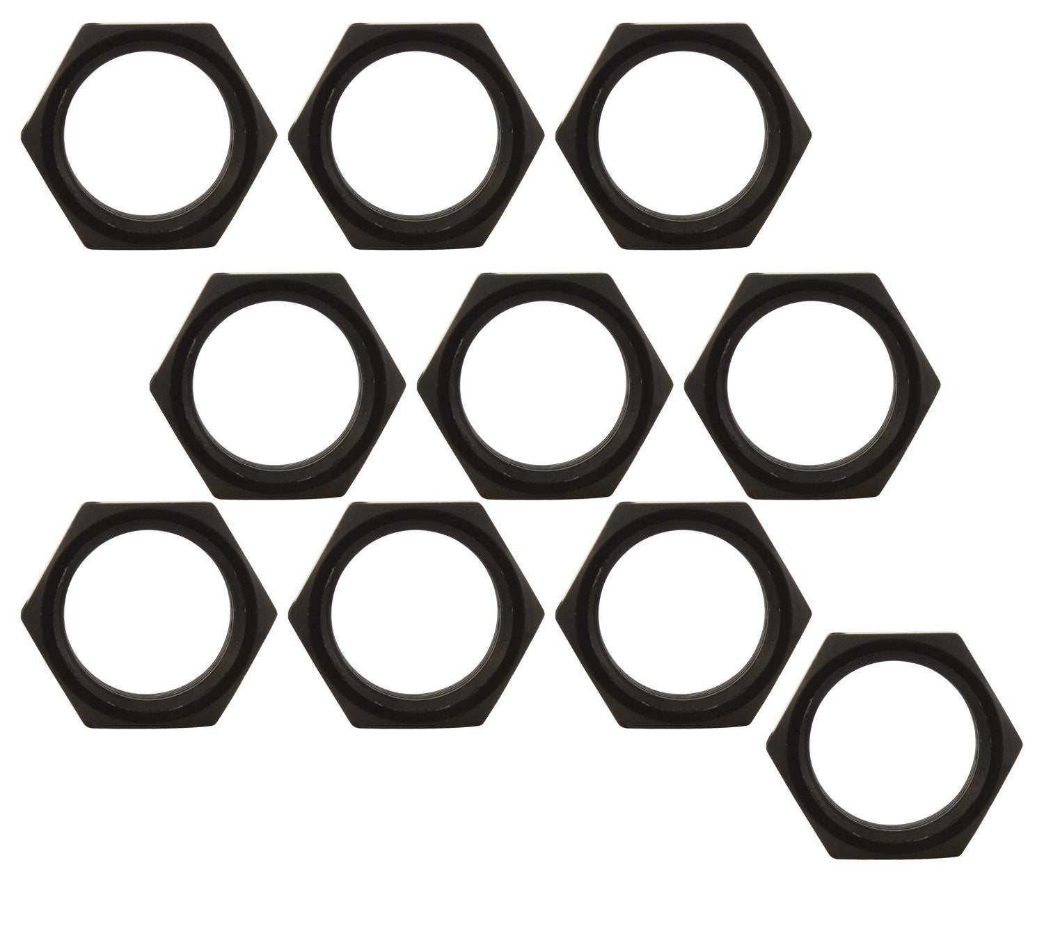 The Allstar ALL18289-10 Black Thread Aluminum Jam Nut is a pack of 10 high-quality jam nuts designed for automotive applications. These nuts feature black thread aluminum construction, providing durability and corrosion resistance. The MPN for this pack is ALL18289-10.