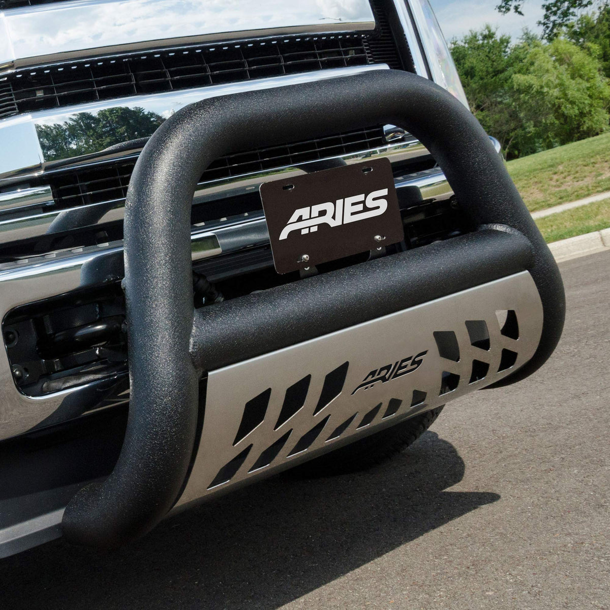 The ARIES AL45-9004 Big Horn 4-Inch Black Aluminum Bull Bar is designed for Select Nissan Titan XD models, providing rugged front-end protection. Constructed from high-strength aluminum, this bull bar offers a bold look while safeguarding your vehicle from on and off-road debris. Enhance your truck's style and functionality with the ARIES AL45-9004.