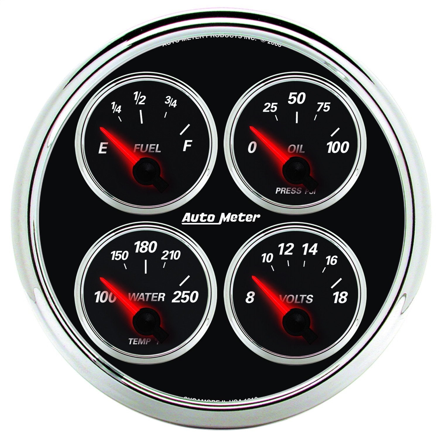 Auto Meter 1211 Designer Black II 5 Short Sweep Electric Quad Gauge