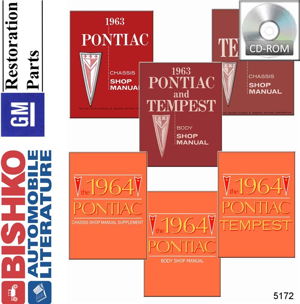 This Genuine Bishko Autobooks MPN 5172 CD contains a comprehensive Shop & Body Service Repair Manual for the 1963-1964 Pontiac Bonneville GTO. Ideal for enthusiasts and mechanics, this manual covers engine details and maintenance procedures, providing valuable insights for a smooth repair process.