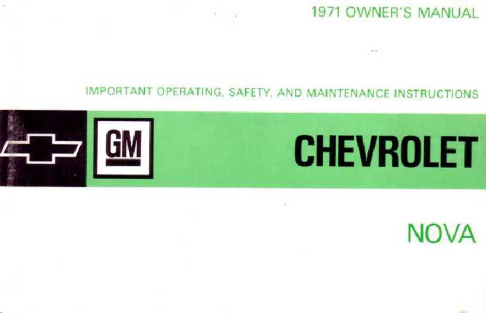 Enhance your driving experience with the 1971 Chevrolet Nova Owners Manual User Guide by bishko automotive literature. This comprehensive reference book provides insights into vehicle operation, maintenance recommendations, and brief specifications. MPN: 6080.