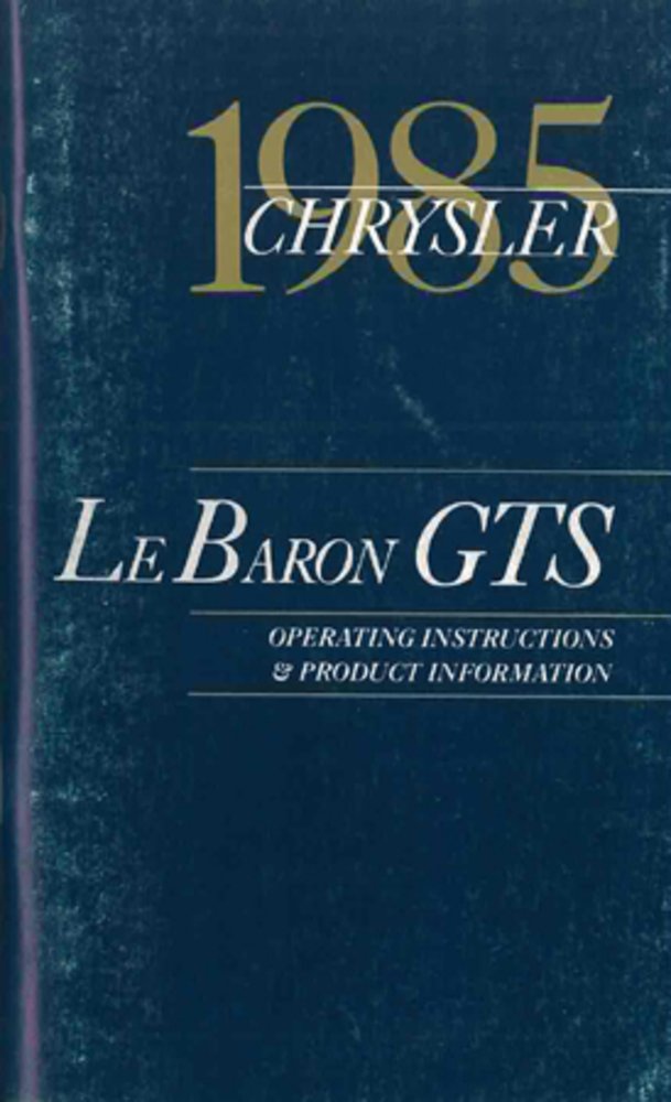 This bishko automotive literature user guide is specifically designed for the 1985 Chrysler Lebaron Gts owners. It provides detailed information on operating controls, maintenance procedures, and specifications. MPN: 7298.