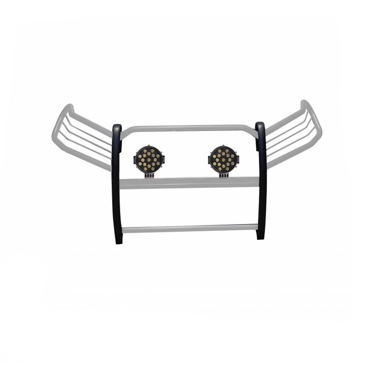 Elevate the look and functionality of your 2019-2023 Toyota RAV4 with the Black Horse Grille Brush Bumper Guard. Crafted from durable stainless steel, this modular guard comes with a pair of 7.0Dia. LED lights with black trim rings for added style and visibility. Compatible with your RAV4, this guard, MPN: 17A093904MSS-PLB, offers both protection and a sleek appearance.