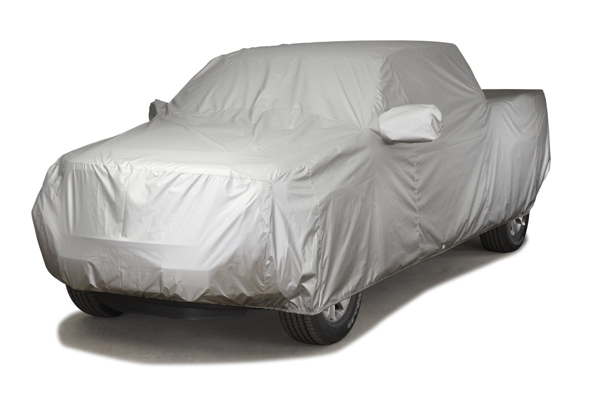 Protect your Ford F-150 with the Covercraft Custom Fit Car Cover featuring ReflecTect Fabric in Silver. This cover, MPN C16875RS, provides superior protection against UV rays, dust, and pollutants, keeping your vehicle looking new for longer.