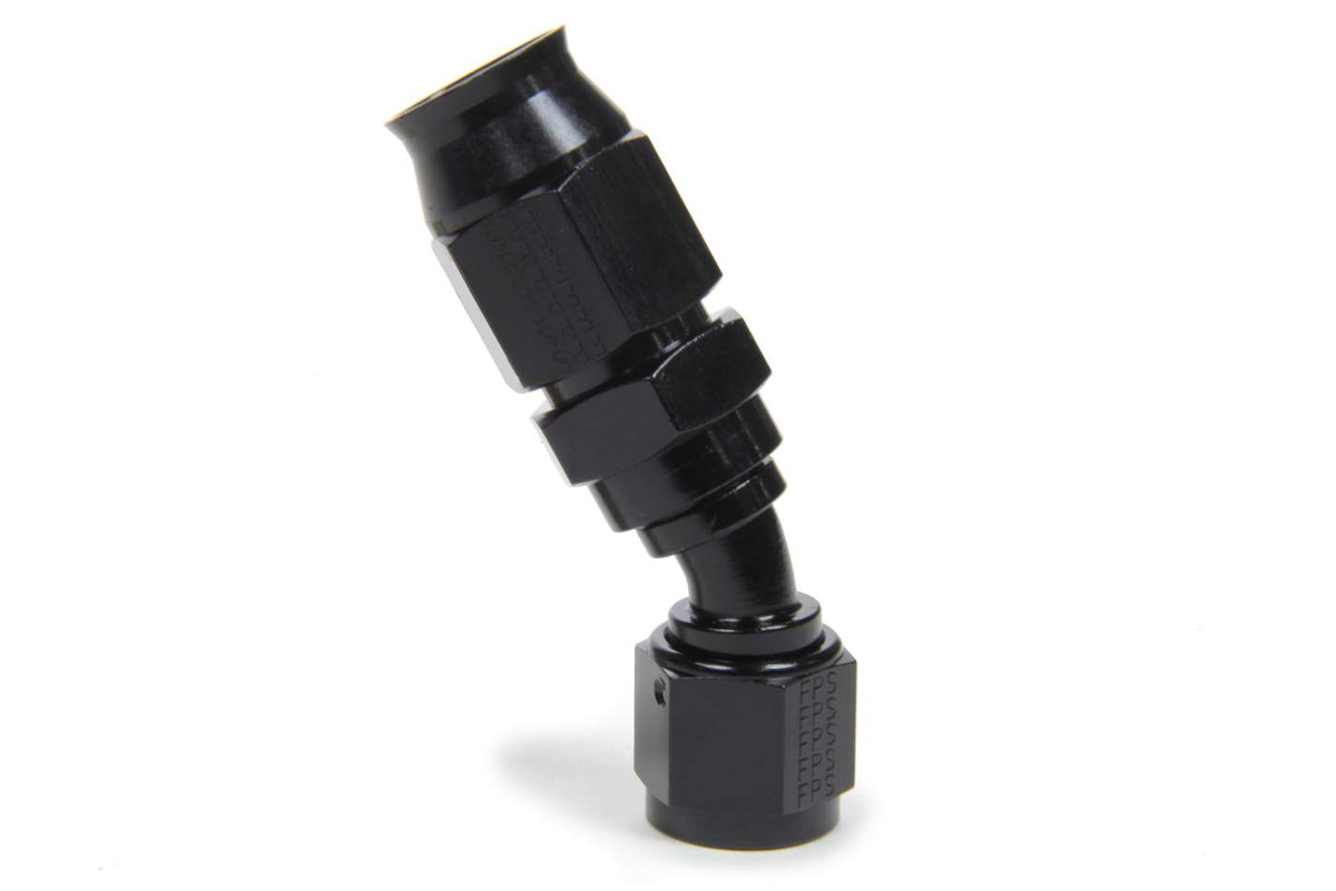 Fitting, Hose End, Race-Rite, PTFE Hose, 30 Degree, 8 an Hose to 8 an Female, Swivel, Aluminum, Black, Each