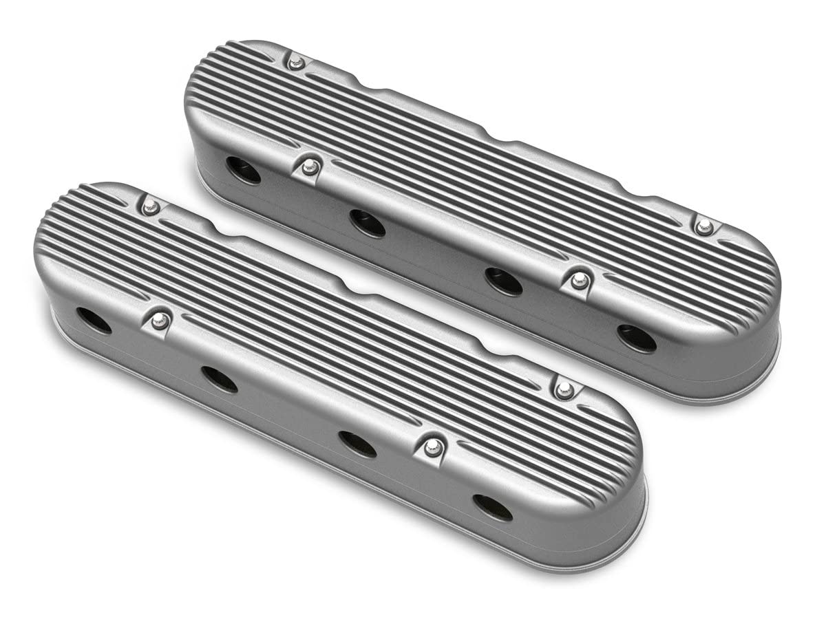 The Holley 2-Piece Cast Aluminum Valve Covers in Natural Finish are designed to provide durability and a sleek look for your engine. With the Holley part number 241-180, these valve covers offer a precise fit and easy installation, enhancing the performance and aesthetics of your vehicle.