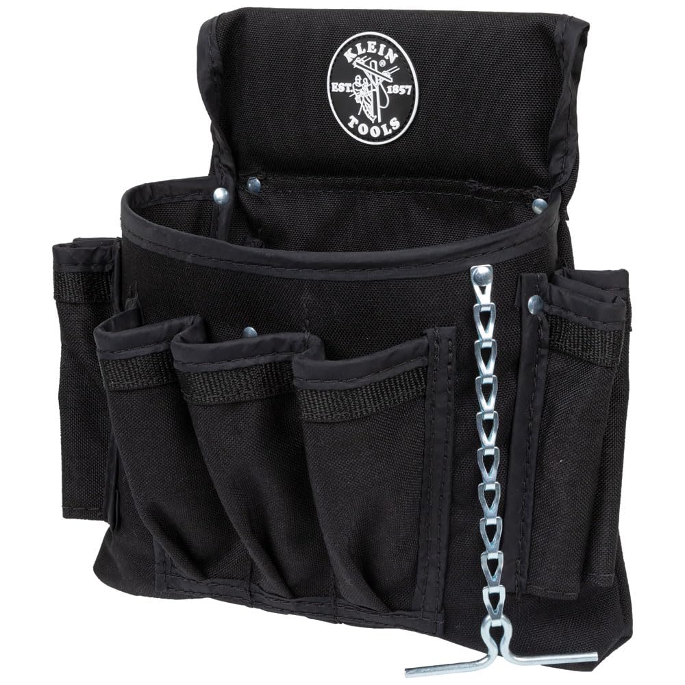 The Klein Tools 5719 PowerLine Series Utility Pouch is a must-have for professionals. With strong rivet-reinforced stitching, this pouch features 18 pockets to keep your tools organized and easily accessible. Fits tool belts up to 2.5 inches. MPN: 5719.