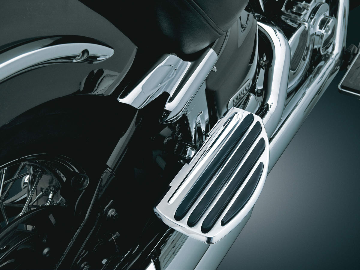 The Kuryakyn 4455 Motorcycle Foot Controls: Passenger ISO Board Conversions in Chrome are designed to provide a comfortable and stylish footrest option for motorcycle passengers. This pair of foot controls offers enhanced grip and stability, making rides more enjoyable. MPN: 4455.