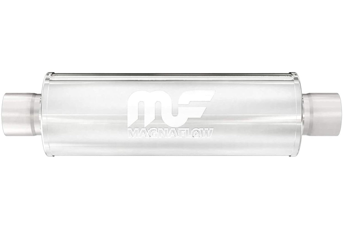 MagnaFlow 7in Round Center/Center Performance Muffler 12774 - Straight-Through, 5in Inlet/Outlet Diameter, 24in Body Length, 30in Overall Length, Satin Finish - Classic Deep Exhaust Sound