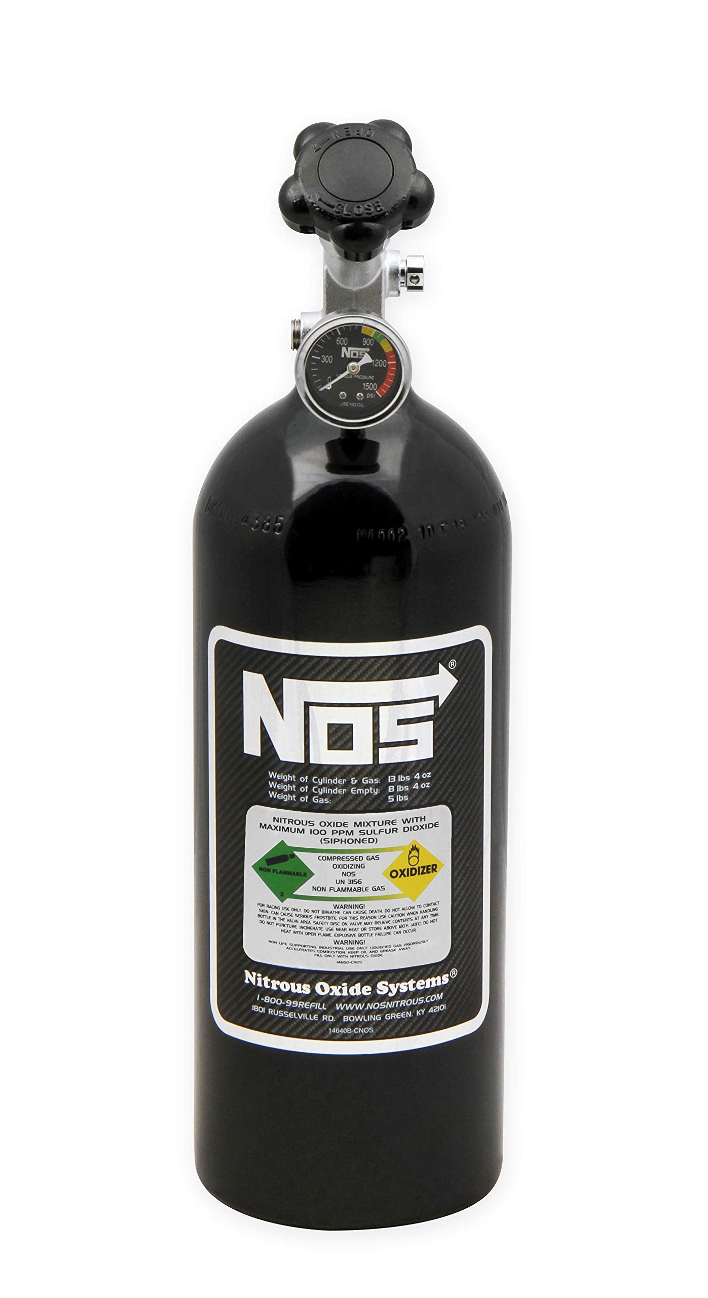 Enhance your vehicle's performance with the NOS 14730BNOS NOS Bottle. This nitrous oxide bottle is designed to provide a quick boost in horsepower and torque, perfect for racing enthusiasts. MPN: 14730BNOS.