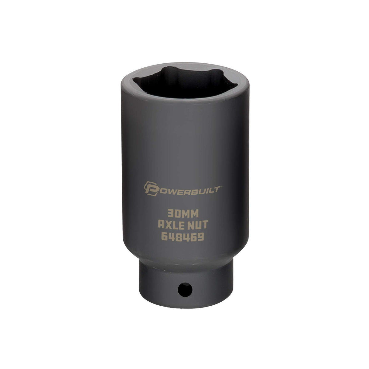The Powerbuilt 30mm Axle Nut Socket is a must-have tool for removing axle shaft nuts with ease. This socket features a 1/2-inch drive, 6-point design for a secure grip and extra deep construction for reaching recessed nuts. MPN: 648469.
