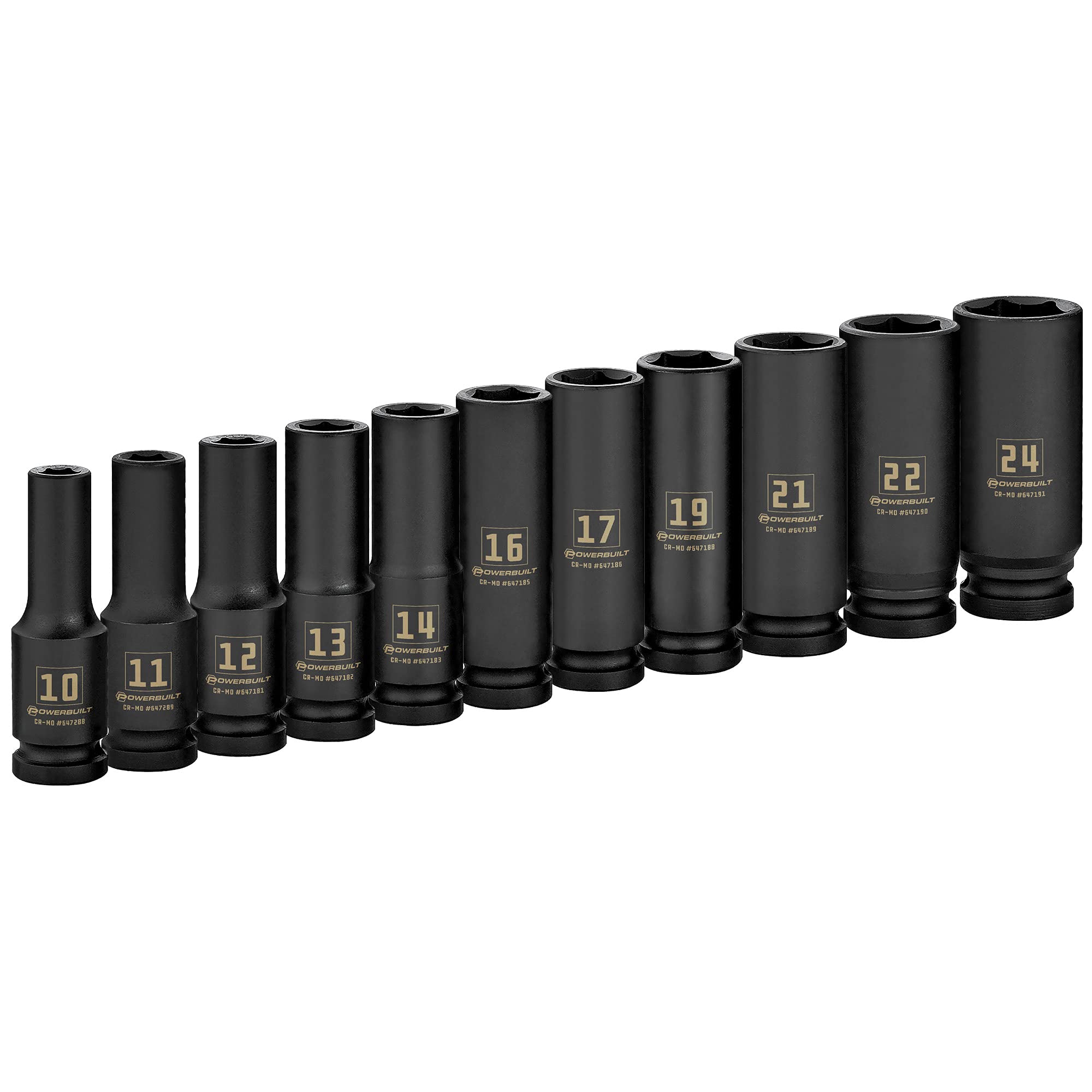 Powerbuilt Metric Deep Impact Socket Set, 1/2 Inch Drive, 6 Point, 11 Pieces, Size Markings, Z-Drive Sockets Grip - Black 647048