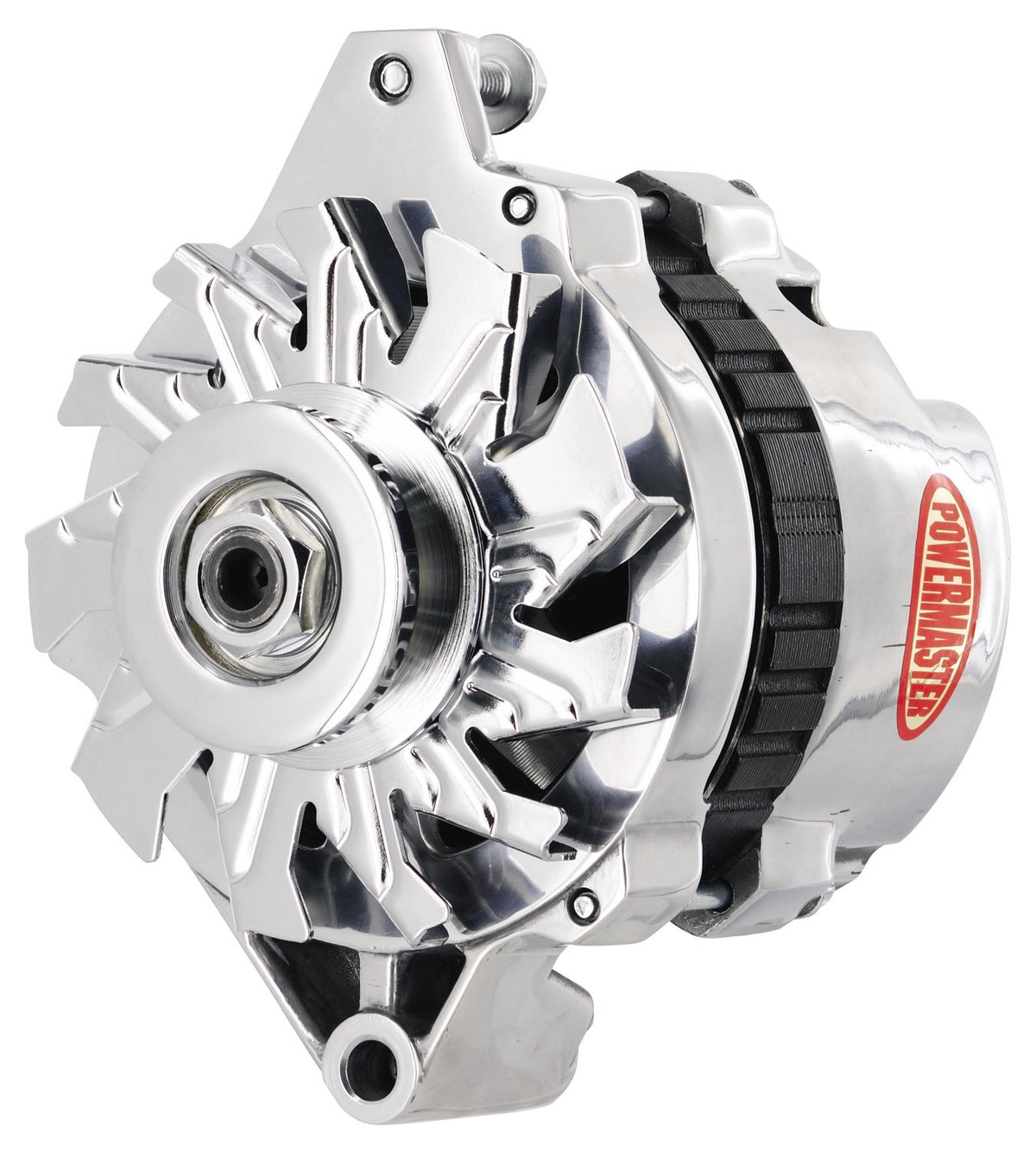 The Powermaster 674021 Alternator is designed for excellent output even at idle, featuring internal and external fans for efficient cooling. This alternator is the highest output small case Delco model with a gold battery post, ensuring smooth performance. Includes proof of performance tag for quality assurance. MPN: 674021
