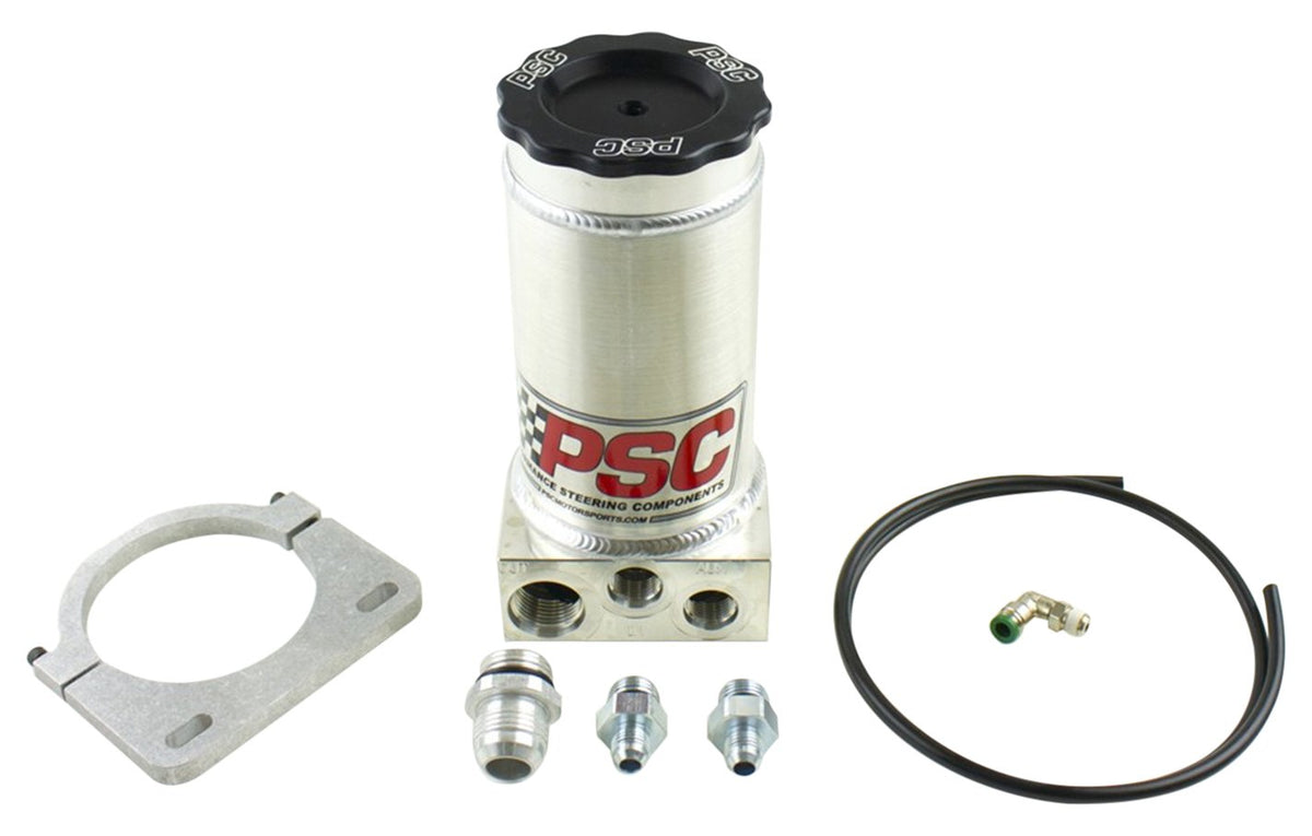 PSC Motor Sports SR146-6-10 Power Steering Pump Reservoir Gen IV 8.25 in. w/Clamp Number 6 Return And Number 10 Feed Power Steering Pump Reservoir