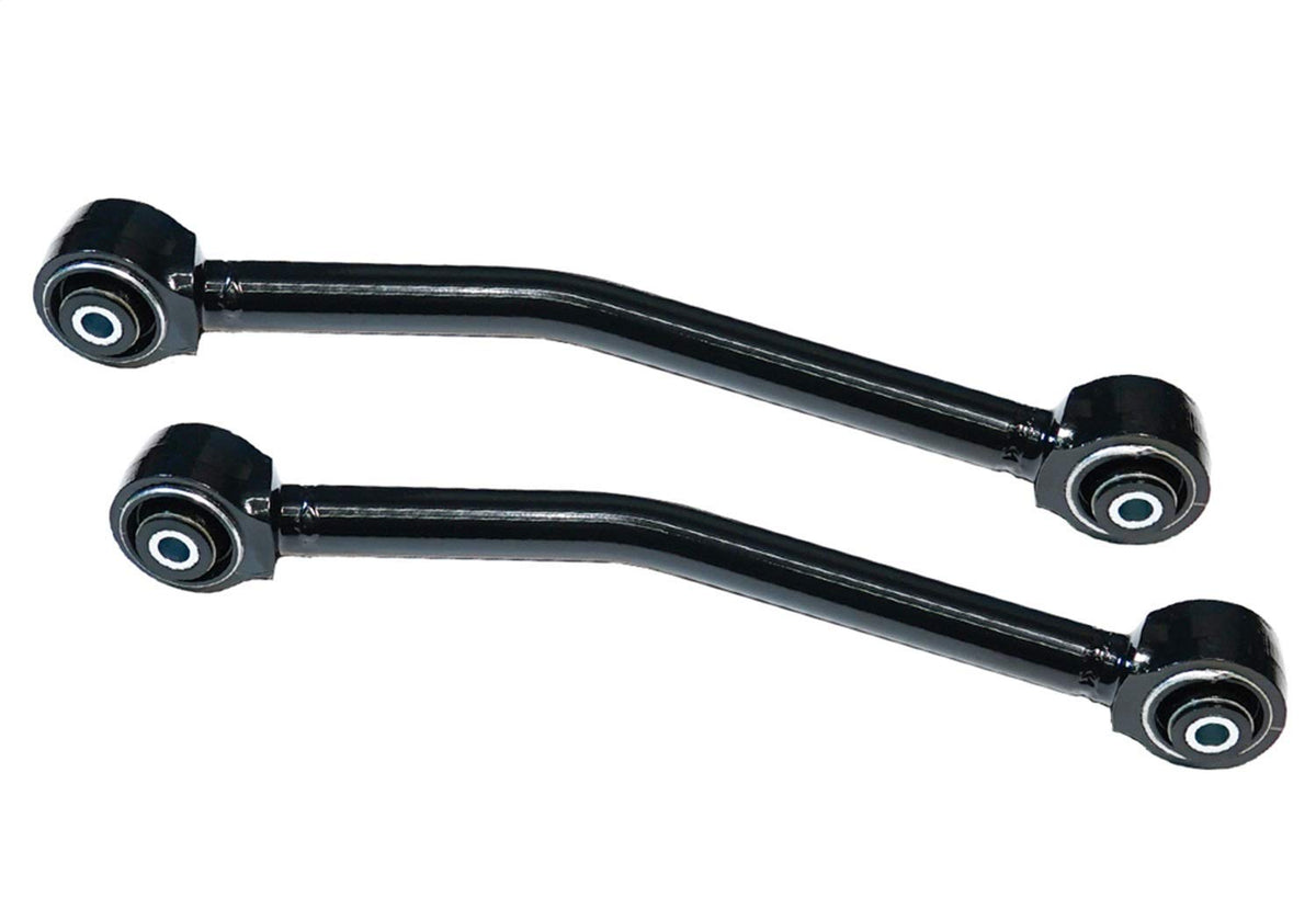 Enhance your Jeep Wrangler JK's ride quality with RealTruck SUPERLIFT SUSPENSION Rear Upper Control Arms. Designed to reduce noise, vibration, and harsh rides, these adjustable arms feature dual offset forged ends that ensure bind-free static positioning. The 2-piece set, MPN 5775, is perfect for 2007-2018 Jeep Wrangler JK models with 2-4" lift, providing increased clearance for oversized tires and precise axle placement.