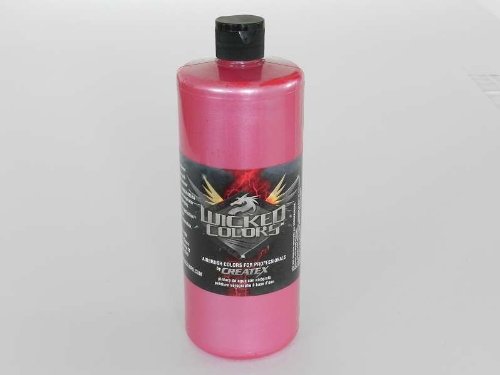 Enhance your art projects with Createx Colors Wicked Pearlized Colors Airbrush Paint in Red. This 1-quart paint features a durable exterior-grade resin and automotive pigments, providing exceptional durability even in outdoor conditions. Enjoy easy flow and atomization with most airbrush tip-sizes, including 0.2mm detail tips. MPN: CRE W303-QT