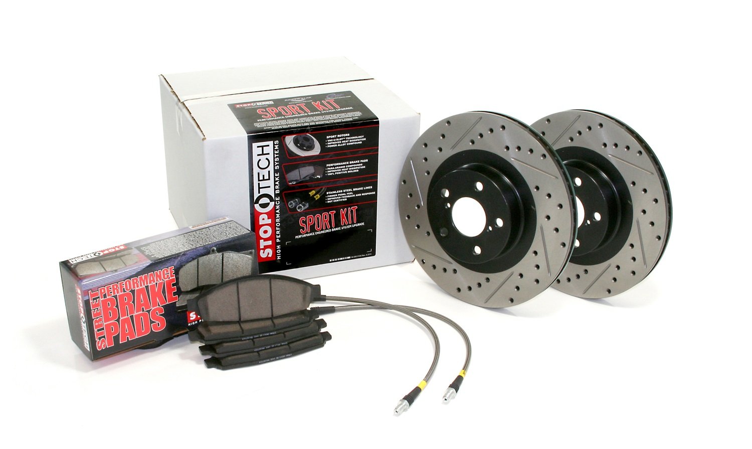 StopTech 978.44013R Sport Rear Axle Pack - Includes Drilled/Slotted Disc Brake Rotors, Pads and Stainless Steel Lines - Fits 1993-1998 Toyota Supra Vehicles