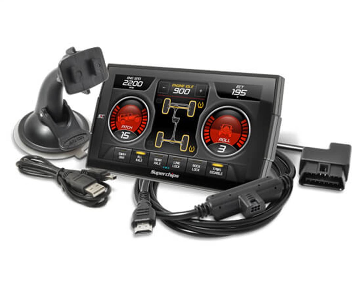 The Superchips 42050-3 TrailDash 3 is a performance tuner compatible with 2007-2014 Jeep Wrangler JK models. Unlock up to 29hp/37tq peak gains and 65hp/90tq max gains, enhancing throttle response, mileage, towing performance, and drivability. With a sleek design, high-resolution swipe technology, built-in Wi-Fi for easy updates, and a CRAWL screen for quick access to off-road features, this tuner offers customization with a color mixer for gauges and multiple screen layouts.