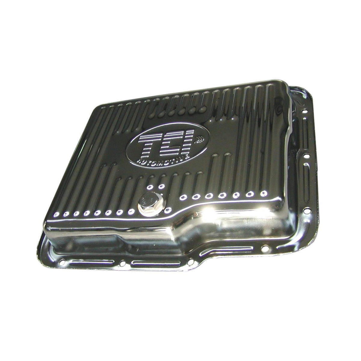 The TCI 528311 GM Powerglide Chrome-Plated Stock Depth Pan is a high-quality automotive part designed for GM Powerglide transmissions. This pan features a durable chrome-plated finish and maintains stock depth for easy installation. MPN: 528311.