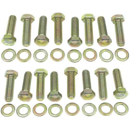 The Trans-Dapt 4925 Intake Manifold Bolt Set is designed for Big Block Chevy 396-454 and AMC V8 engines. This set includes 16 Grade 5 bolts with AN flat washers, each sized 3/8-16 x 1-1/4. Secure your intake manifold with these high-quality bolts for reliable performance. MPN: 4925