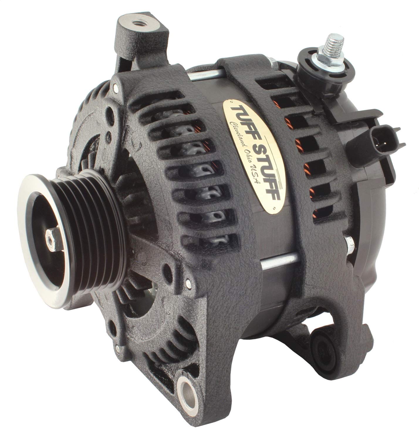 Tuff Stuff Alternator, 175 amp, 12V, External Regulator, 6 Rib Serpentine Pulley, Black Wrinkle, Jeep Wrangler JK 2007-11, Each (7513B)